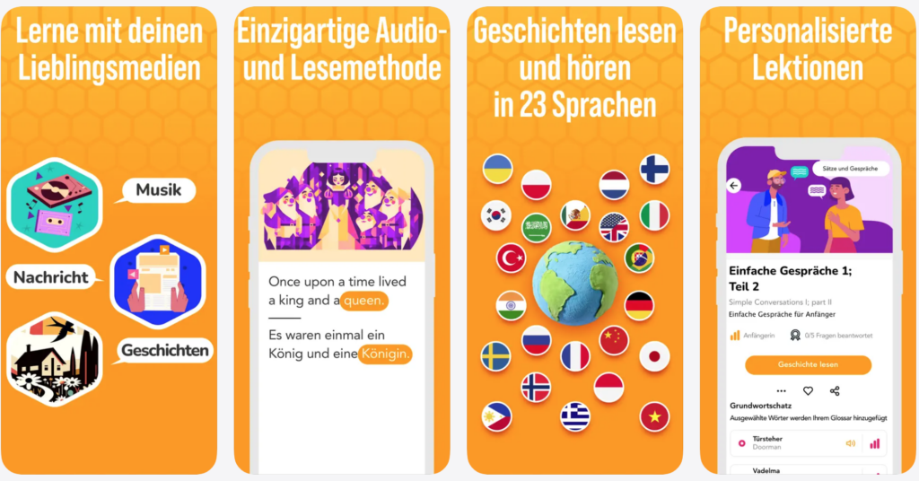 - Für wen: Leseratten, passive Lerner und alle, die Sprachen durch Lesen und Hören verbessern wollen