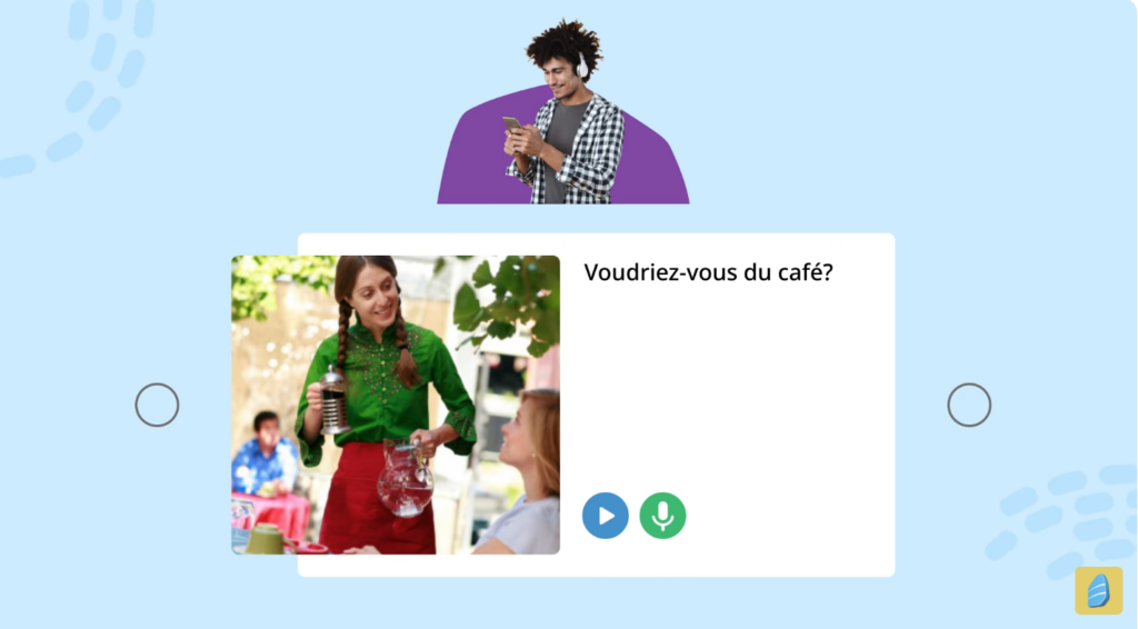 - Immersive Methode: Du lernst ohne Übersetzungen – das trainiert dein Sprachgefühl und sorgt dafür, dass du intuitiv denkst.